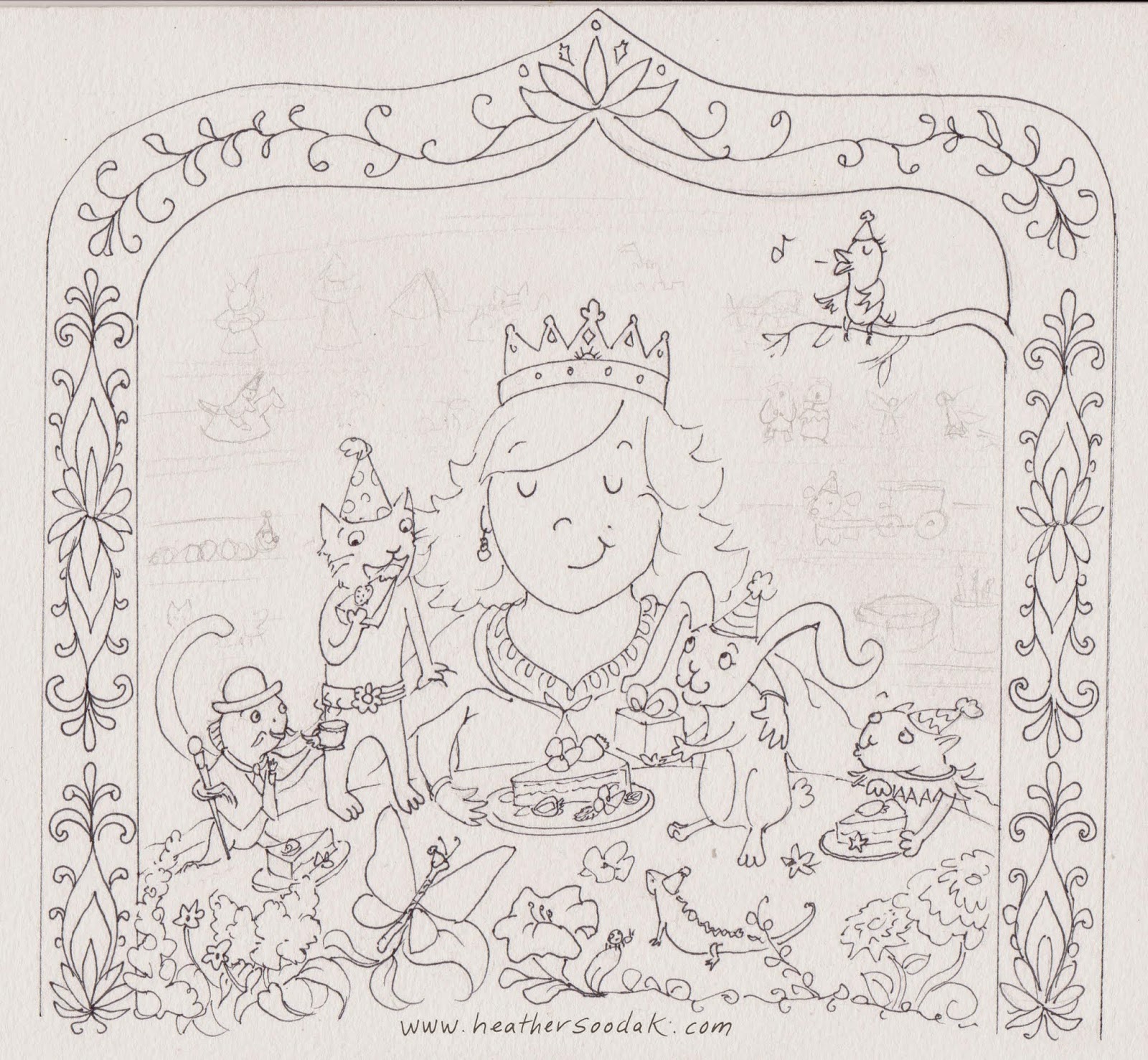 My pi day adventures in autobiographical comic form where I met with my fellow illustrators, had a pie date, took the dog for a walk, and met a talking bird and the mayor. Now, that's an eventful day. I think I was so tired by the time I finished the comic it just ends as you can see. This comic is drawn on a 5x 8" paper with a watercolor wash background.